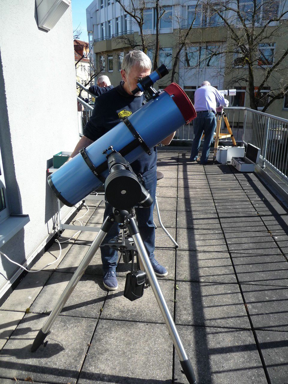 Die Sternfreunde unseres Astrostammtisches trafen sich um 14 Uhr. Bauten ihre Teleskope auf der Terrasse der Sternwarte auf: