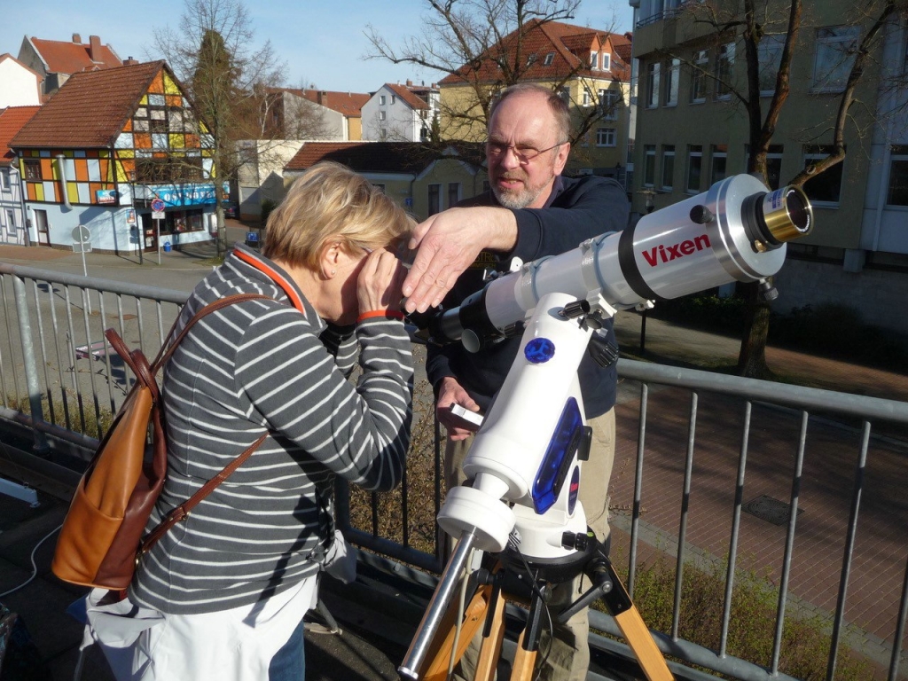 Es war noch keine 15 Uhr, da kamen schon die ersten Besucher. Bis 17 Uhr schauten sich bereits 43 Besucher die Ausstellung an und genossen die Blicke durch die Teleskope. Ohne Ausnahme waren sie fasziniert vom Anblick der schmalen Venussichel.