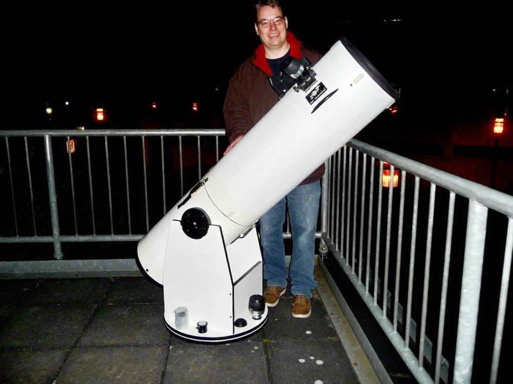 Andreas S. brachte seinen lichtstarken 12,5“ Dobson in Position, um den Kometen 41P, der im Bereich des Großen Wagens steht, ins Okular zu holen. Leider war die Sichtmöglichkeit bedingt durch Gebäude und Bäume dann doch nicht möglich, ersatzweise wurden dann brilliante Sternhaufen gezeigt.